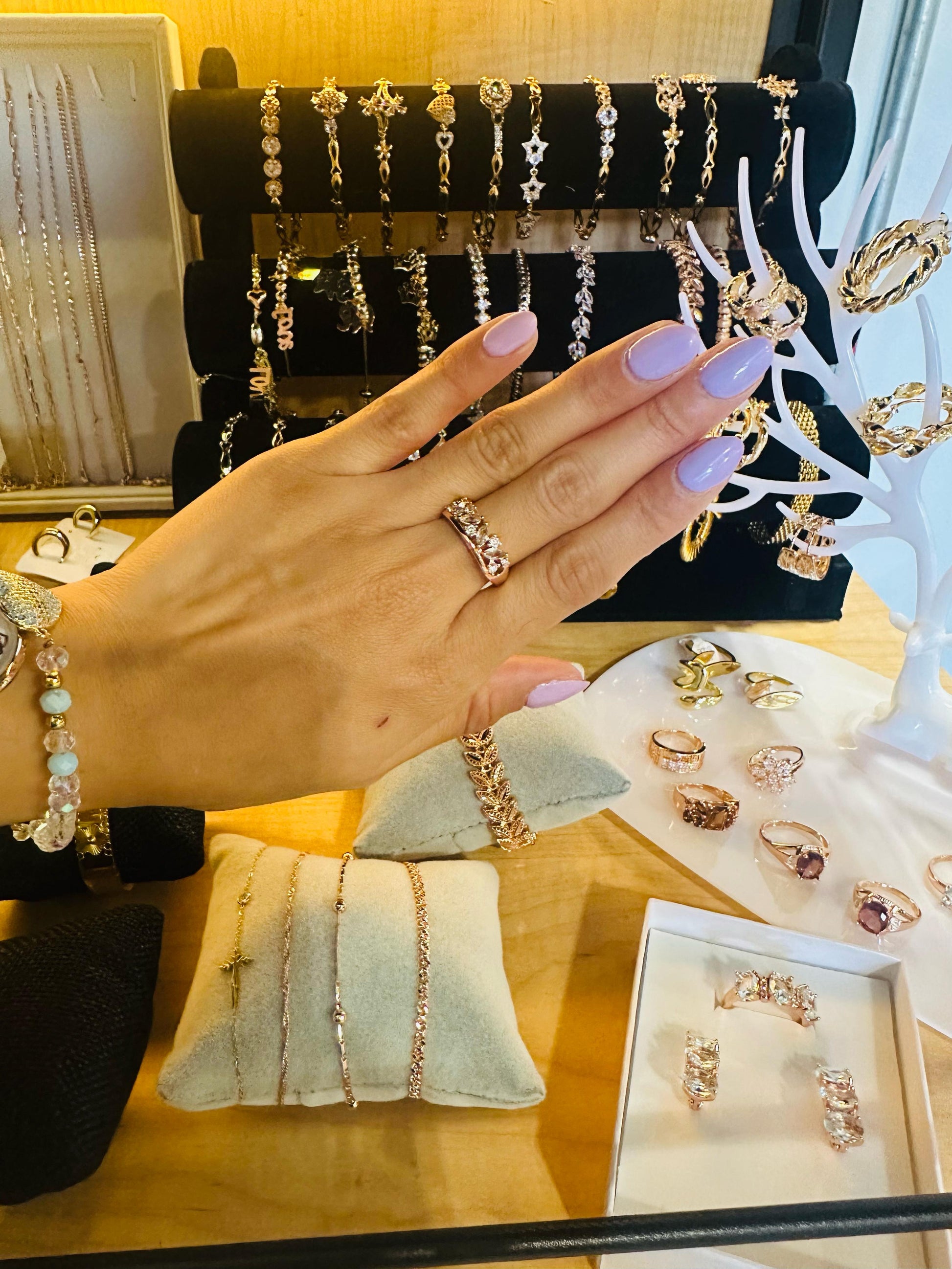 Anillo dorado apilados de múltiples elementos está bellamente empaquetado y es agradable a la vista. Es una buena idea hacer el regalo perfecto