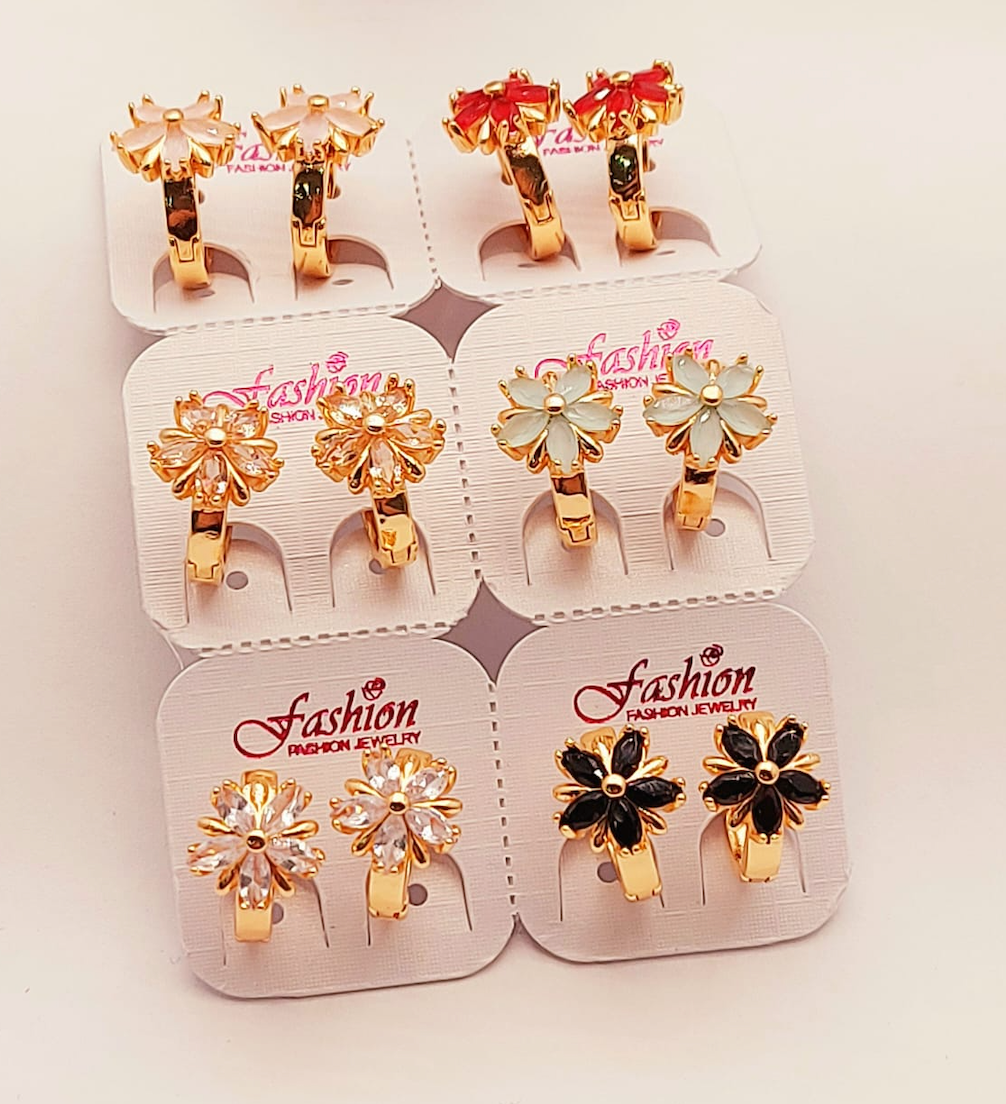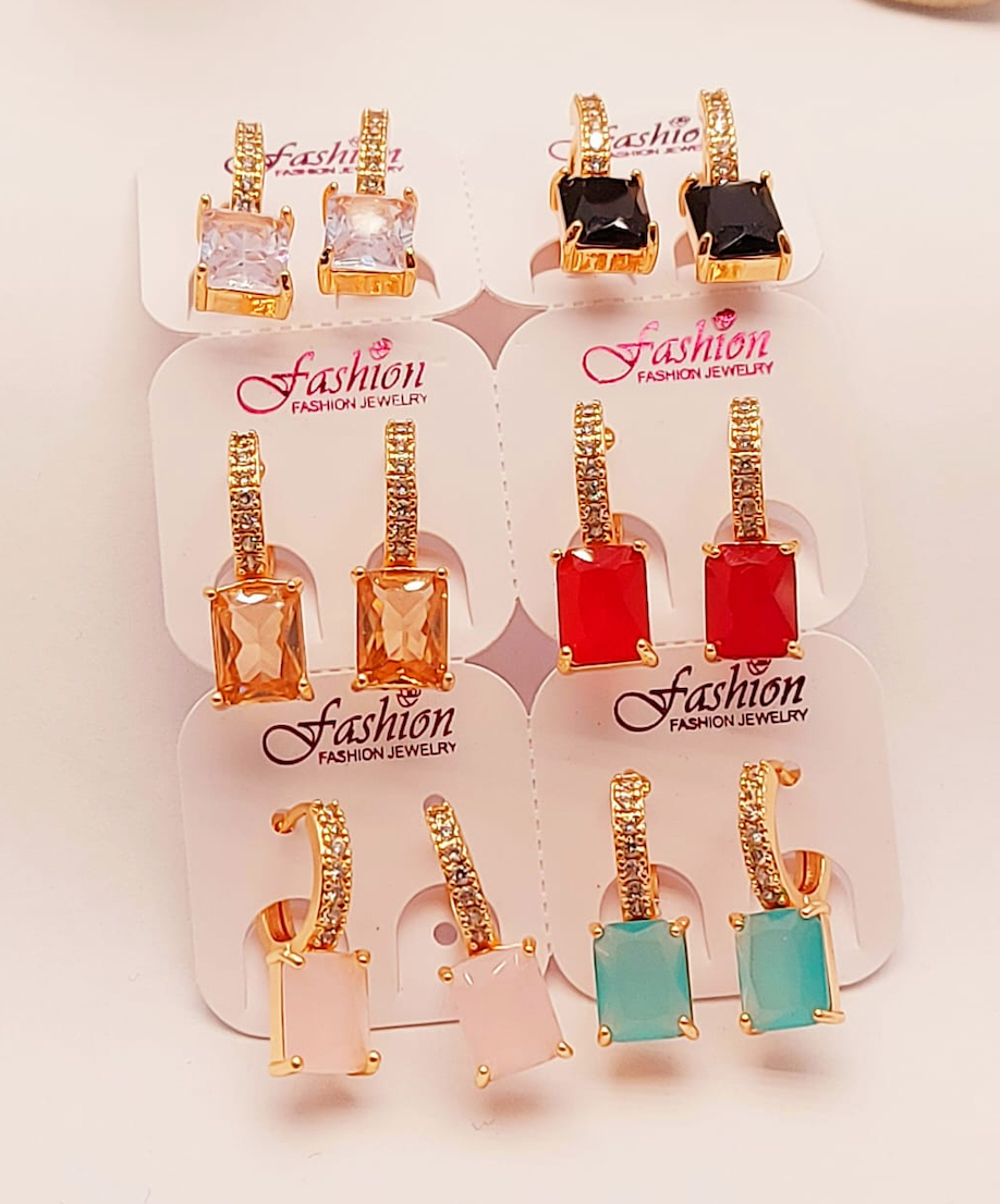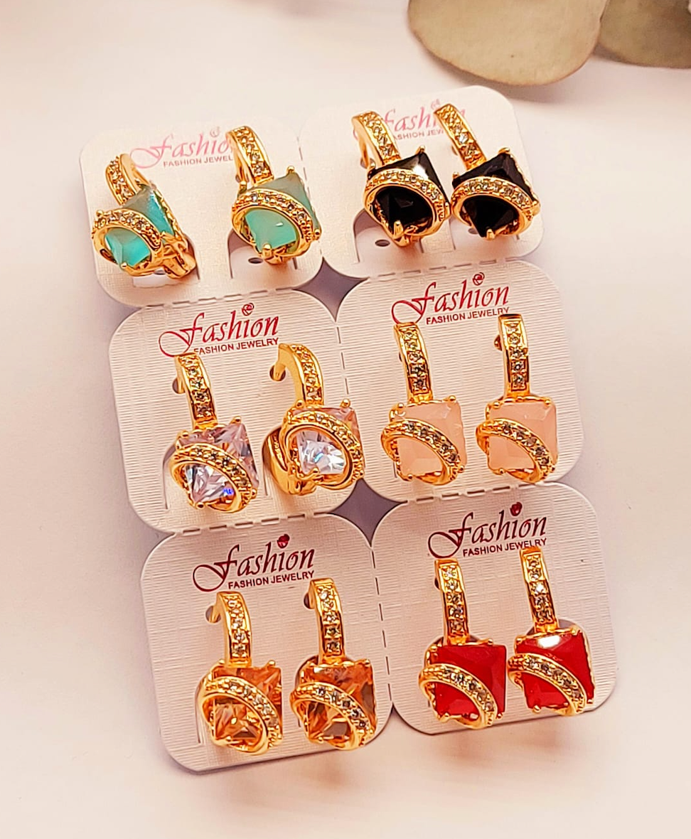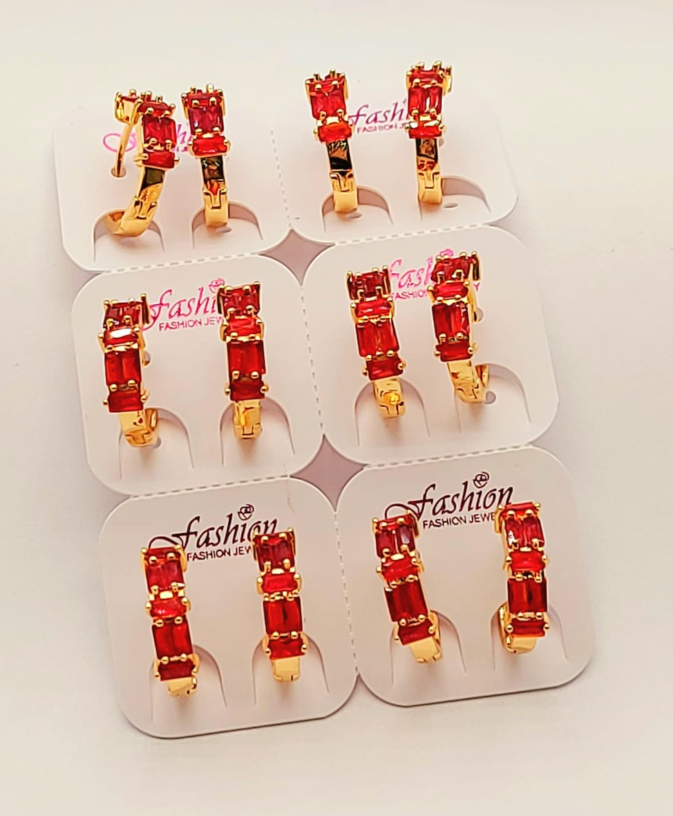 Aretes de alta calidad. Los aretes están hechos de acero inoxidable colocar dorado con detalles rojos.