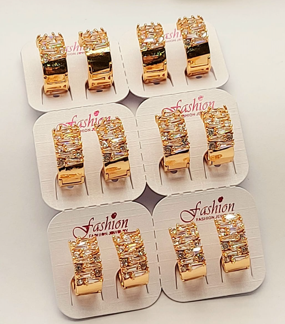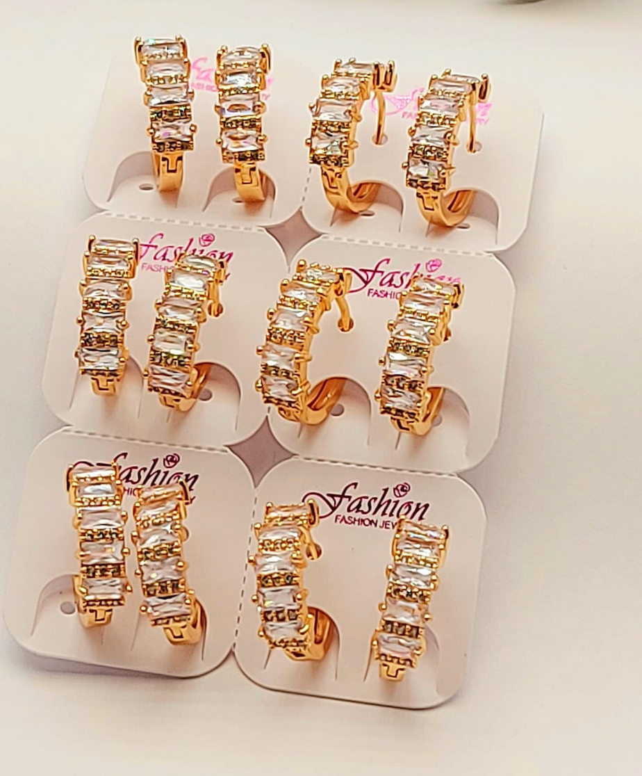 Aretes de alta calidad. Los aretes están hechos de acero inoxidable colocar dorado con detalles rojos.